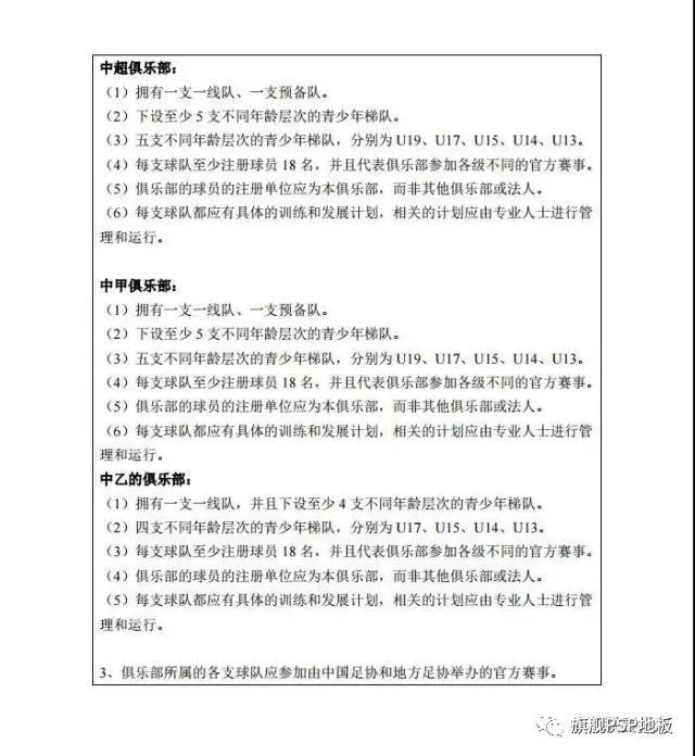 12月21日訊 北京時間今日,中國足協(xié)發(fā)布了關(guān)于印發(fā)《中國足球協(xié)會職業(yè)俱樂部準入規(guī)程》的通知,規(guī)定中超、中甲球隊須有5支梯隊,中乙球隊4支梯隊。